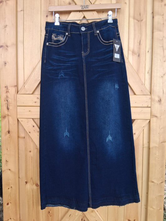 Sold out38" distressed dark denim skirt