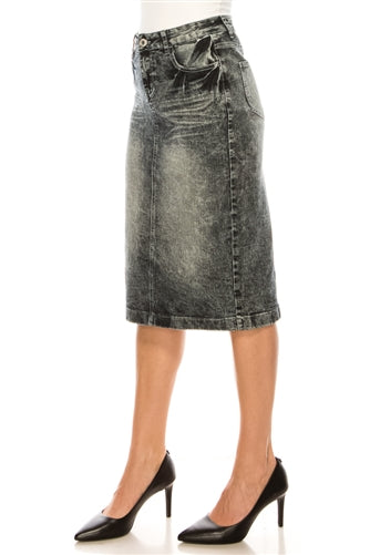 Black Snow Wash Denim Skirt