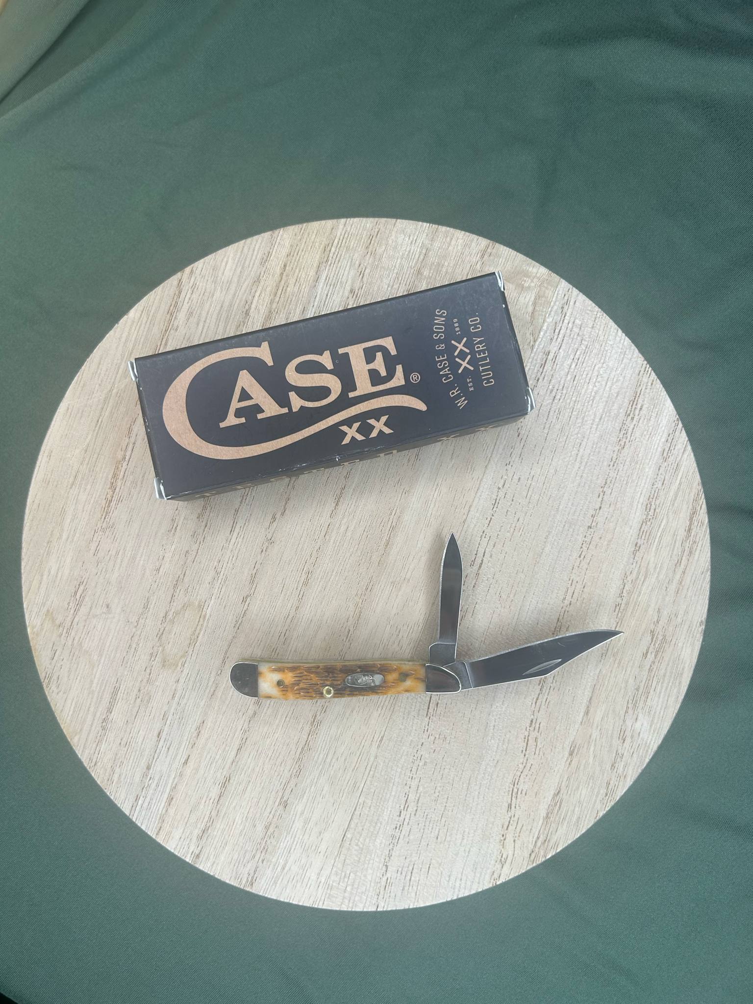 Amber bone peach seed jig case knife SS